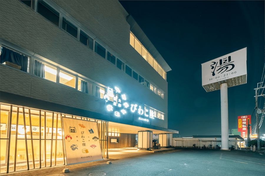 滋賀県大津市に店舗を構える、おふろcafe®「大津温泉おふろcafeびわこ座」は、コンセプトを「東海道五十三次の宿場町」と定め、和モダンな空間の中に様々な形のくつろぎ空間、多くの雑誌やコミック、古くから続く大衆演劇の劇場を備えており、全国でも珍しいラドンを含む天然温泉やサウナもお楽しみいただける、現在の宿場町を連想させます。びわこ座に寄り集まり、語らい、くつろぎを共にそれぞれが思い思いにお過ごしください。