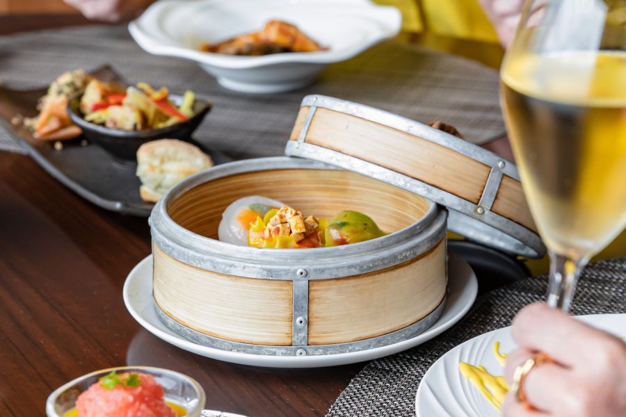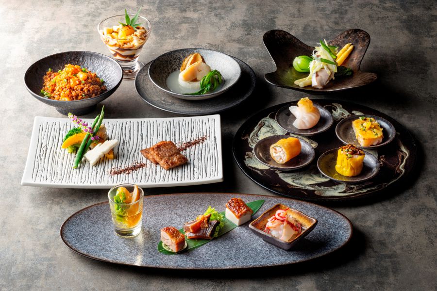 王道のチャイニーズをベースに、モダンな食材やエッセンスを掛け合わせた、美しい調べを響かせるハーモニーのような存在である「チャイナシャドー」。「リュトモス(リズム)」と「メロディア(メロディ)」の間で眼下に広がる東京の眺望と26階の吹抜けを繋ぎ、空間に調和が生まれるよう、「ハルモニア(Harmonia、ラテン語で“調和”の意)」をテーマとし、クリエイティブで洗練されたプレゼンテーションでお届けします。点心師が一つひとつ丁寧につくりあげる繊細な点心のコースをはじめ、ビジネスでのご会食やワインペアリングと楽しむフォーマルディナーなど、エレガントな空間にてご堪能ください。
