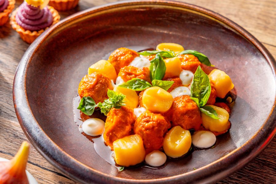 空間は広々としていて天井も高く、とても気持ちの良い雰囲気。落ち着いて食事を楽しめます。 料理はセミビュッフェスタイルで、メインはオーダー、前菜とデザートはビュッフェ形式。ビュッフェには普段あまり見かけないニシン料理などがあり、まるでスウェーデンのスモーガスボードを思わせるような内容で、味付けもユニーク。さらに旬の栗を使った料理など季節感のある品も揃っていて、都内のビュッフェとしては味・個性ともにトップクラスだと感じました。 メインはチキンのカチャトーラ風を選びましたが、トマトベースながら嫌な酸味はなく、大人っぽい味付けでとても美味しかったです。