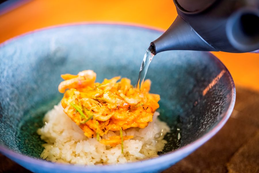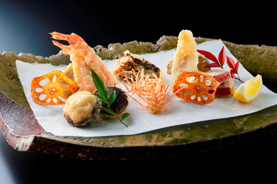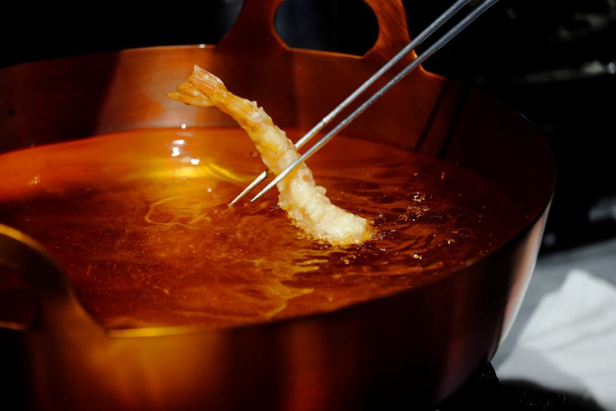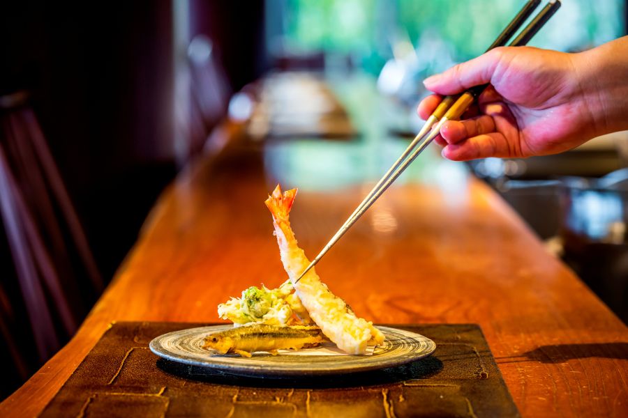 揚げたての天麩羅をカウンターで。滋賀県産の野菜や季節の素材など、お客様の目の前で職人が揚げてご提供いたします。料理人との会話も楽しみながら、ゆっくりお過ごしください。