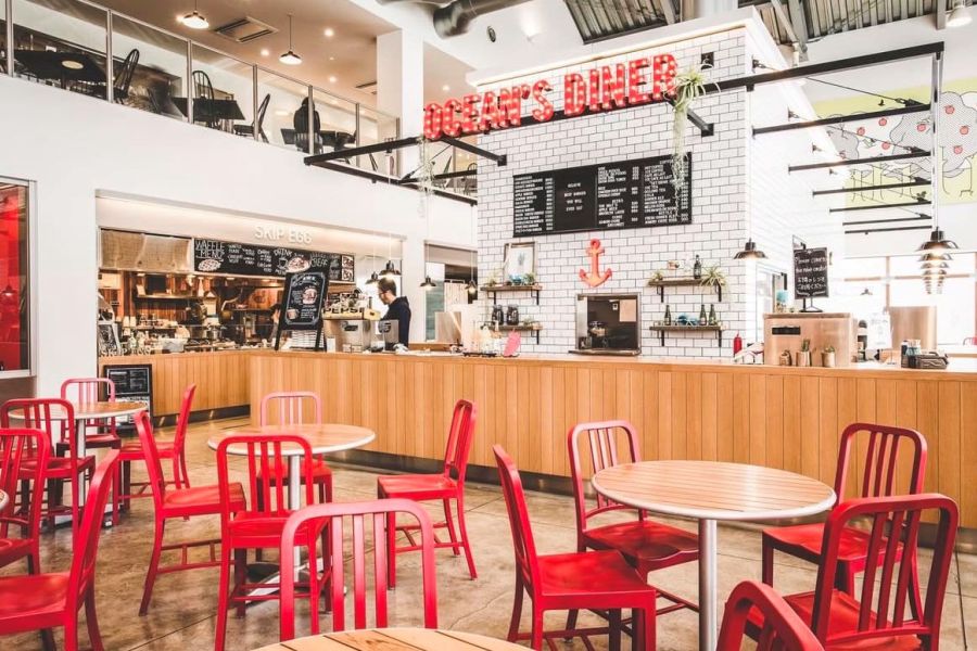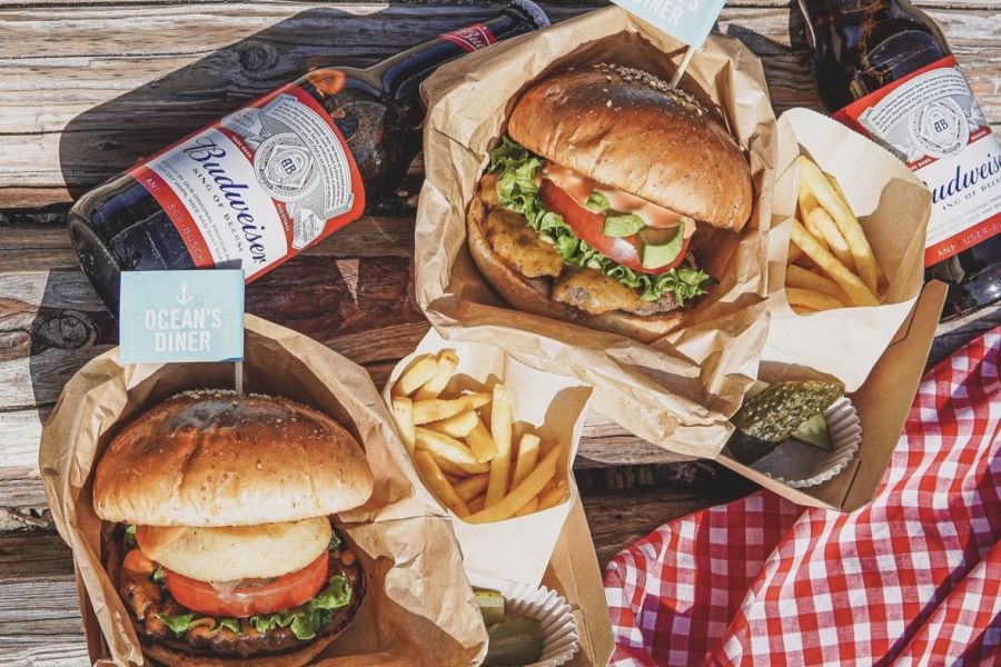 JR青森駅から徒歩2分ほどのA-FACTORY。飲食・物販ショップやシードル工房から構成される複合施設。旅の想い出を彩る様々な「アオモリミヤゲ」を用意している。陸奥湾をバックに六連の三角屋根が並ぶ建物は2011年度にグッドデザイン賞を受賞。青森ベイブリッジと並ぶ様は美しい。ライトアップされた夜の景色も素晴らしい。 施設1FにあるOCEAN'S DINERは青森県産グラスフェッド短角和牛バーガーの店。 BEEF100%でつなぎ不使用。選び抜いた肉質・食感の異なる部位をブレンドした肉々しいパティが楽しめる絶品バーガーを提供する。 平日の13時頃伺うとフードコートは半分くらい席が埋まっている。オーシャンダイナーには先客なし。黒板に書かれたRECOMMEND MENUはオーシャンズバーガースペシャル1,790円・オーシャンズバーガー1,700円・シードルソーダ620円・シードル各種720円。 カウンターで注文・会計をすると呼び出しベルを渡される。7分ほどでベルが鳴ったので商品を取りに行く。 *ホットコーヒー480円 ファストフードっぽい雰囲気だが、都度コーヒーを淹れてくれるのは好印象。気分良く飲んでいると後半、コーヒー豆のジャリジャリ感を感じる。自宅でもドリップ時にお湯をこぼすと粉がコーヒーに混入する事があるけれど…。