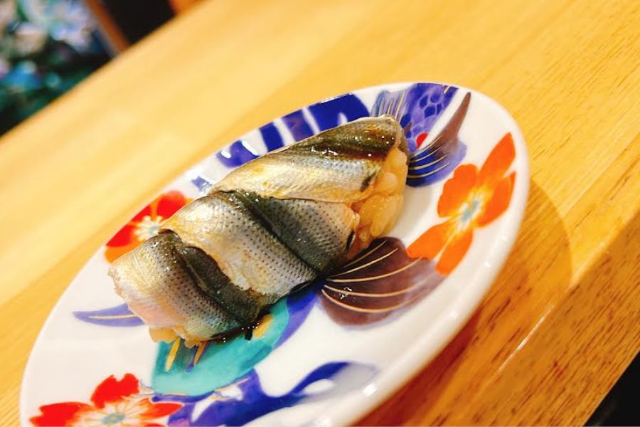 お通しから、豪華! 6品ほど盛り合わされているのですが、その中にもハスが使われていたりとこだわりが感じられます。 (ハスは琵琶湖で獲れるコイ科の魚) まずはお鮨! お寿司のお米は近江米を使用しており、 滋賀県の米酢と赤酢の2種類しゃりをネタによって使い分けされています。 今回頼んだのは、中トロ(¥850)・白甘鯛昆布〆(¥1,200)・ぶり藁焼き(¥550)・あおり烏賊(¥450)・水口干瓢(¥650)。 目の前で握ってくださるのですが、とっても新鮮なお魚を使われており、どれも絶品! 特に中トロはとろけるような口溶けで、ぶりも藁の香りが香ばしくとっても美味しかったです。 干瓢巻きも滋賀県水口の名産なのでぜひ食べていただきたいです。 ◎鰻のとろろ蒸し餡かけ ¥1,950 とろっとろの餡かけの中には、鰻がたーっぷり隠れていました。 この鰻がとにかくふっわふっわ! 優しい甘みの餡と鰻の風味が絶妙でした。 ◎キンキ炭焼き ¥3,300 ふんわりとした身に脂が程よく乗っていて、深みのある上品な甘みと旨みを感じられました。 焼き加減もちょうど良く、おいしくいただきました。 ◎伝助穴子の天ぷら ¥2,000 衣は軽くてサクッサクッ、穴子はふわふわ! 天ぷらなのに全くくどくなく、パクパク食べられちゃいました。 ◎なめろう ¥1,000 特製味噌で和えられており、紫蘇がいいアクセントに! お酒のアテにぴったりでした。 何を食べてもおいしくて、大満足なひとときになりました。