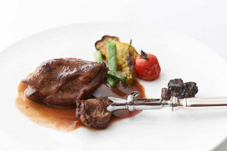 今回2回目の訪問。1回目は開店してすぐ訪れたので約12年ぶりになります。ちなみに食べログの初投稿者は私です。 今回のメニューは以下の通りです。 Menu Déjeuner AMUSE-BOUCHE 本日のアミューズ ENTRÉE ポワロー葱のテリーアや鶏レバムースとトリコフのヴィネグレット Terrine de Poireaux et Mousse de Foie de Volaille POISSON 北海道産 鮮魚のポワレロイヤルソース Poisson du Jour de HOKKAIDO, Sauce Royale VIANDE 本日のお肉料理 Viande du Jour DESSERT 小さなデザート Avant Dessert & ワゴンデザート Chariot Dessert CAFÉ コーヒー/紅茶/ハーブティー Café ou Thé 特筆すべきは、 シェフのスペシャリテの「ポワロー葱のテリーアや鶏レバムースとトリコフのヴィネグレット」です。 初めて訪問した時は、確かこのメニューはなかったときの面のですが、ネギの本来の美しさを楽しめるものでした。 今回はお祝いということでプレートを作っていただけました。とても美しいもので食べるのがもったいないくらい。シェフの喜んでもらいたいと言う気持ちが伝わってくる感じがしました。 最後のデザートワゴンは甘いものが好きな方には絶対にお勧めします。一つ一つが素晴らしく、なぜこんなにたくさんの種類を作れるのか不思議なくらい。 本当に満足度が高いランチだったと思います。