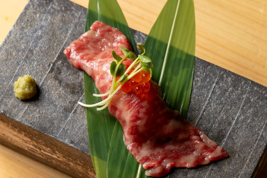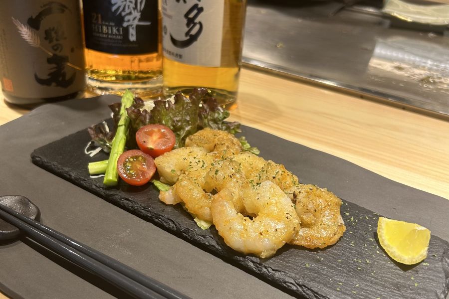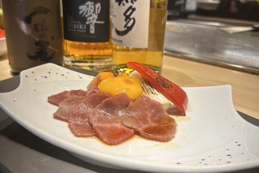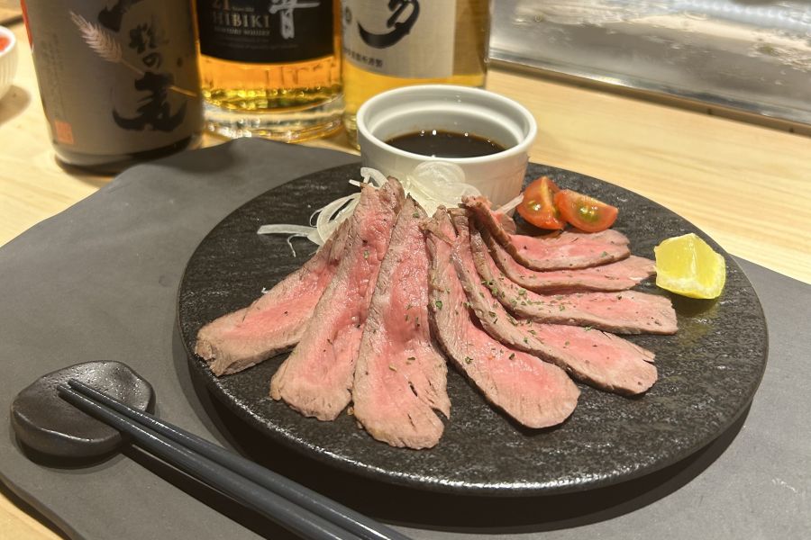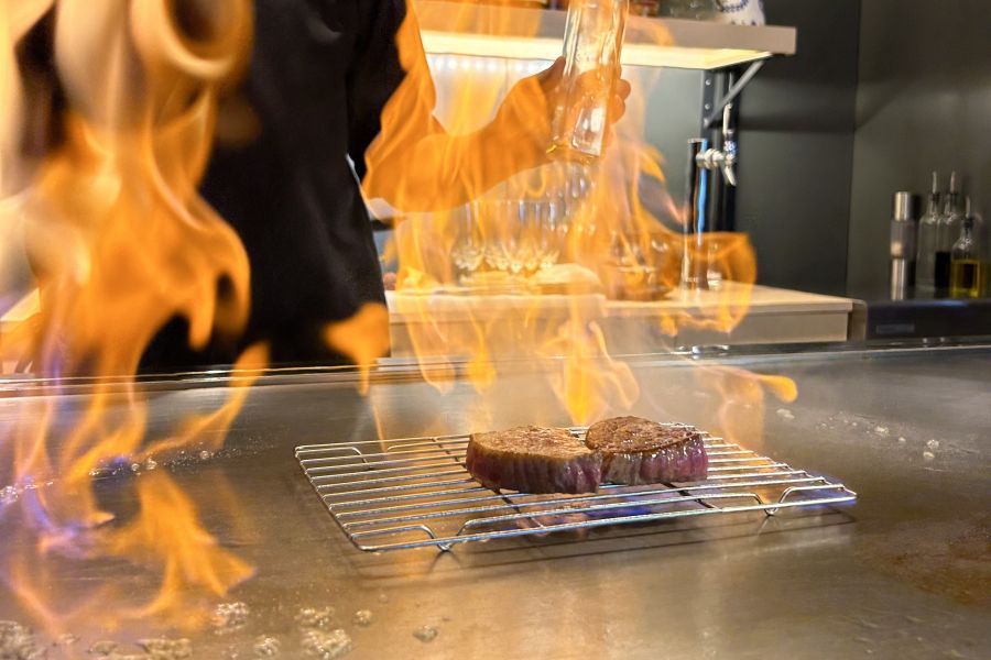 店内は大きくなく、落ち着いた和モダンのデザインで、デートや女子会、接待にもぴったりです! 他の鉄板焼き店にはない、リラックスした雰囲気と、少人数だからこそのVIP級のサービスを受けられます🥹 私たちが頂いたのは「幸コース」7,800円。 食べてみたいものが集まってるコース✨ コースに前菜、グリル野菜、刺身、黒毛和牛握り寿司、ハンバーグ、スープ、黒毛和牛赤身ステーキ🥩、ガーリックライス、ジンジャースープ、手作りスイーツ(私が行ったときは抹茶のティラミス)が含まれています。 前菜からその美味しさに驚いて😳新鮮な食材と絶妙な味付けで、おいしかったです〜 また、一口入れたらとろける黒毛和牛握り寿司も忘れられない🍣 しかもボリュームがあり、私たち女性2人は十分に満足しました😌