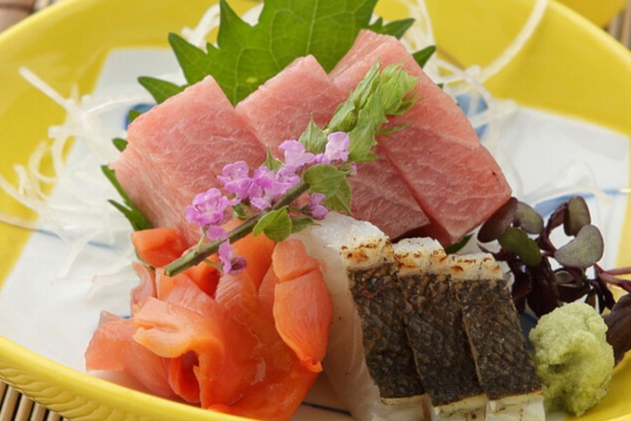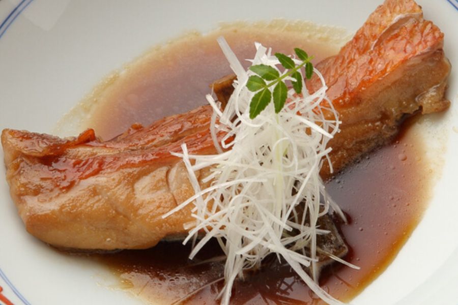 開店して15分過ぎ位に伺いましたが、ビルの5階にあるにも関わらずほぼ満席。メニューは各々の魚の煮魚定食、焼魚定食、お刺身定食と日替わり定食があります。今回金目鯛の煮付け定食とお刺身も食べたかったので、単品でも注文もオーケーとの事で注文し頂きました。 金目鯛の切りつけはかなり大きめでビックリ!更に7品目の小鉢とご飯、お味噌汁がついて1,700円です。金目鯛の煮付けはさっぱりした味付けで、お酒にもご飯にも愛称抜群です。それとお店の人にお話しを伺うとランチタイムもご予約可能との事。嬉しい事ばかりの竹林草でした。