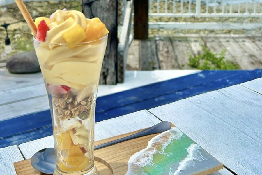愛知県知多郡南知多町の山と海に囲まれた自然豊かで穏やかな空気の流れる山海地区で、店内、デッキともに全席オーシャンビューのお席をご用意しております。海を見ながらオリジナルスイーツ、人気NO.1の7種のナンチッタパフェやいちごやマンゴーのスムージーなど、こだわりのスイーツやランチをお楽しみください♪夜は予約制でお食事コースなどもご用意しております。詳細はホームページやインスタグラム等をご確認いただけたら嬉しいです。