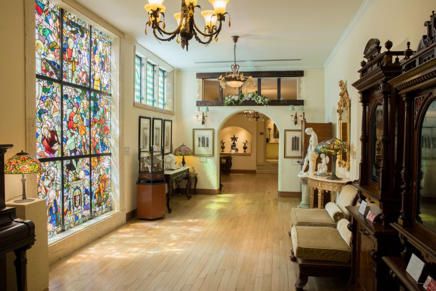 1800年代のステンドグラスや美術品を中心に約300点を展示。色鮮やかなステンドグラスの作品をお楽しみ頂けます。イギリスのマナーハウスをイメージした石畳の外観や、目の前には紺碧の海が広がる絶景のロケーションは、お写真映えもバッチリ!アンティークパイプオルガンやオルゴール演奏会が毎日開催。(:30~パイプオルガン、:00~オルゴール)入館料のみでお楽しみ頂けます。カフェも併設なので、ゆったりとしたお時間を過ごせます。ワンちゃんもカートでのご入館が可能です。