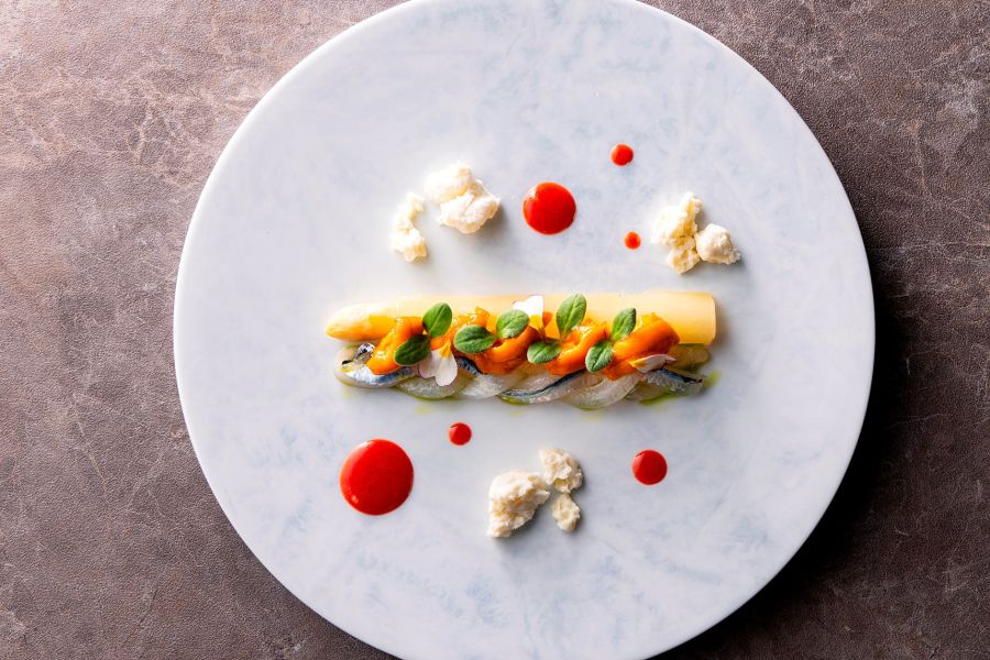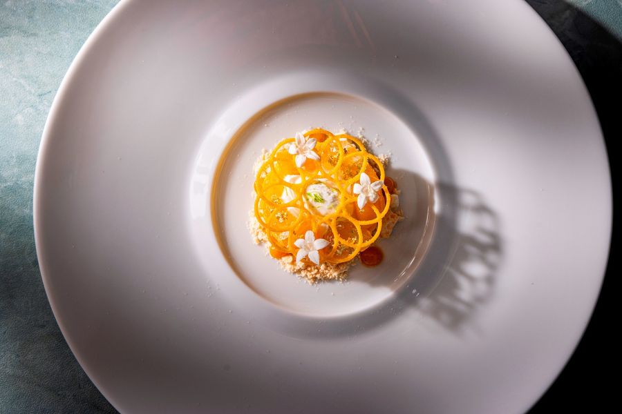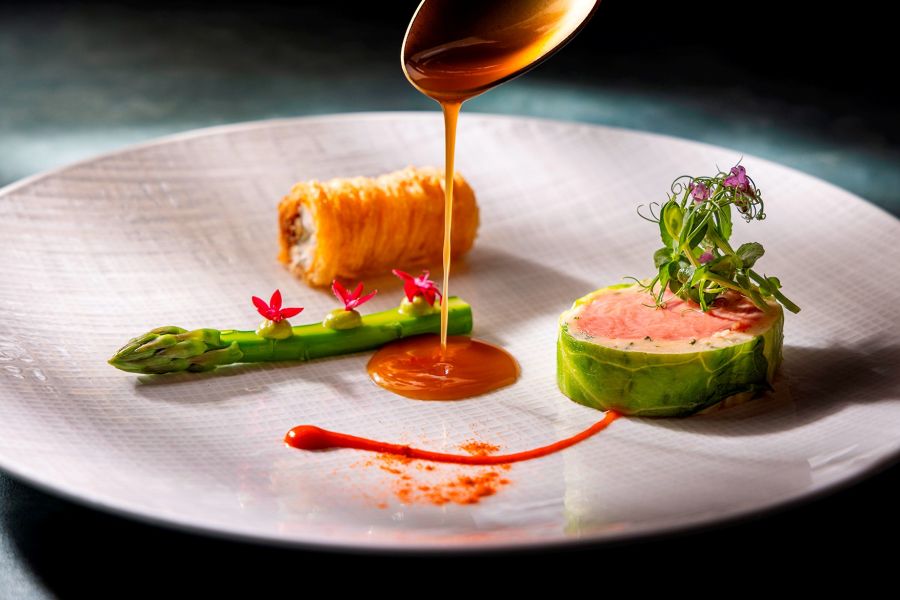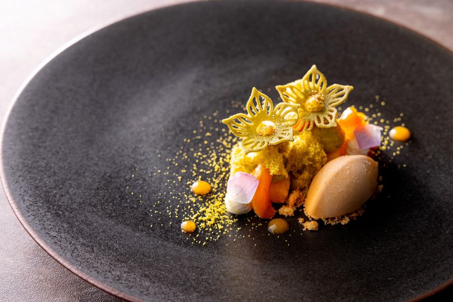 料理長 影山拓磨による、フレンチの技法をベースに和のエッセンスを取り入れたお料理は、季節の食材の個性やうまみを引き出した繊細な味わいと華やかなプレゼンテーションが特長です。コンラッド東京の28階に位置し、高さ7mの窓から望む汐留のダイナミックな景色とモダンかつエレガントな内装が見事に調和した空間で、オープンキッチンのライブ感溢れる様子とともにお食事をお楽しみいただけます。シーズンごとにメニューが変わる芸術的で洗練されたシグネチャーディナーコースや、贅沢な週末のひとときにぴったりな土日限定のウィークエンド・ブランチで、こだわりの詰まったモダンフレンチをご堪能ください。
