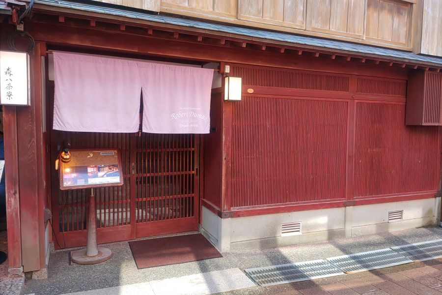 ひがし茶屋街の中にある、築100年以上の御茶屋をリノベーションしたフランス料理店。地元金沢の食材を大事に、本場フランスで学んだ技術を組み合わせ、素材の味を引き立てたお料理に仕上げます。お料理と合わせるお飲み物はペアリングワインがおすすめ。ソムリエールが選ぶワインの内容は、シェフの料理をよく知り、最良の組み合わせを考えつつお客様のお好みに沿った内容で組み立てます。2階には金沢らしい赤壁、青壁の個室があり、大切な会食の場としても人気があります。