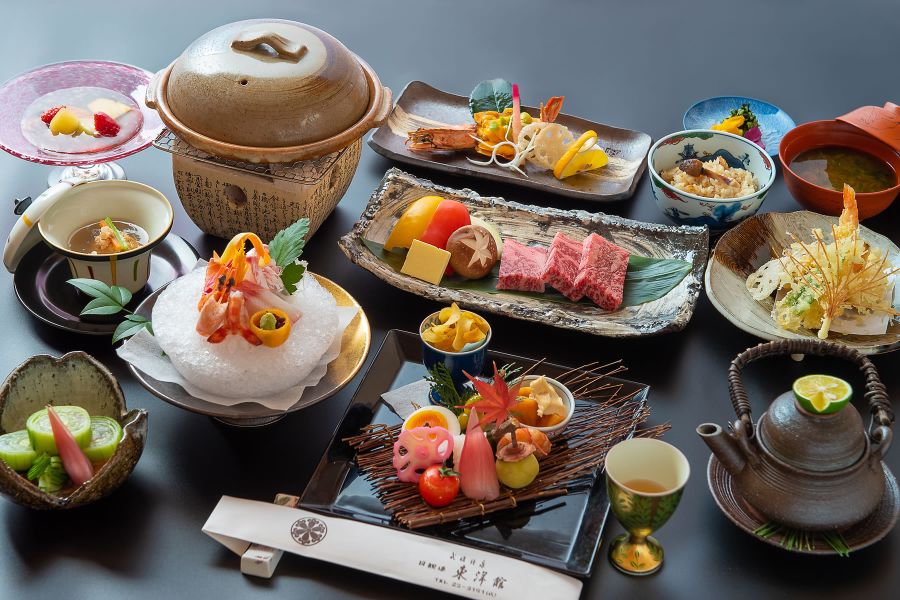 傾聴の頃、旅人の宿として、はじまった湯元荘東洋館は、剣豪 宮本武蔵も、逗留したといわれる、由緒の宿です。武雄温泉のシンボル、「楼門」の前に位置し、西九州観光の拠点としても便利です。敷地内から湧き出る温泉は、単純アルカリ泉で、無色透明のやわらかな肌触りと、保湿保温力の高さで、長年にわたり、多くのお客様に、愛されてまいりました。土地のもの、季節の食材をもちいて、調理する会席料理をお部屋または、個室でごゆっくりお召し上がりください。