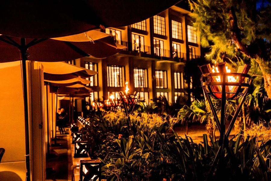 木麻黄(モクマオウ)超しに海を眺め、オープンテラスで、潮風を感じながら昼はカフェ&ランチ、夜はBBQディナーが、お楽しみ頂けます。※タイガービーチカフェ 4月~10月の季節営業でございます。