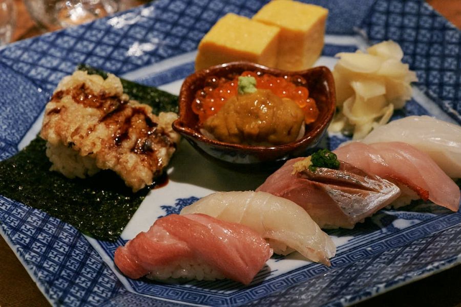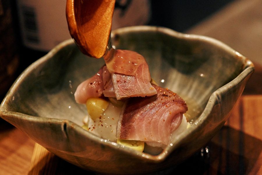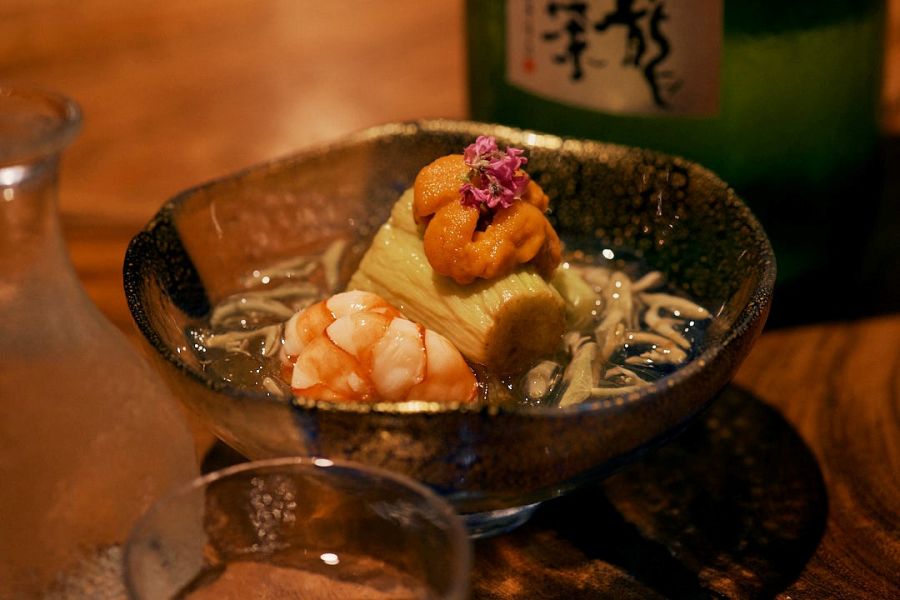 つくねが俺の上司だったら昇進してた キッチンの中が丸見えだった。 隠す気ゼロ。包丁の動きも、ネタの扱いも、ぜんぶさらけ出してる。ここまで見せるってことは、よっぽど仕事に自信あるんだなって、背筋が伸びた。 まずぶち込まれたのが、 和牛の巻物 with ホースラディッシュ。 いや、前菜の顔してメイン張れるやつ出すなよ。 脂の甘さとツンとくる辛味のバランスが完璧すぎて、「これ今のメインって言われても全然納得できるよね」って2人して目で会話した。 白子ポン酢はもう語るより感じる系。 大ぶりでとろける。 そして本気出してきたのが旬菜の9種盛り。 これ、食べる盆栽。見た目も美しいし、何より一口ごとに季節が変わる。 特にピーナッツ。なにこれ、豆ってこんな色気あったっけ? 銀杏も、可愛いあの子が殻に手間取ってたら、店員さんがすっと剥いてくれた。いや、スマートすぎ。モテるのはこういう人。 で、真打ち登場、ラムの照りたまつくね。 見た目はつくね、中身はハンバーグ、味は事件。 ラムなのに全然クセがなくて、逆に物足りないくらいまろやか。でもそこに甘辛のタレが絡んくる。 これ、注文しない人は人生3%損する。 今日の握り4貫 鯖は三段重ねのサンドイッチ構造で、噛む前にとける。 カワハギには肝がたっぷり乗ってて、濃厚で危険な味。 ウニの軍艦はこの物価高の時代にバグみたいな量のってて、震えた。 マグロはきちんと熟成されてて、香り、旨味、余韻、全部がいい。 もうここで終わる予定だった。 でも目が勝手にメニュー開いた。 そして注文、鱧と松茸の天ぷら。 衣サクサク、香りブワッ、秋の暴力。 鱧の骨切り、プロ。松茸の香り、犯罪スレスレ。 終わり方として完璧。 良い夜だった。 食事って感情だ。いや、感情しか勝たん。 次にあの席に座る誰かが、今日の俺たちみたいに満たされますように。