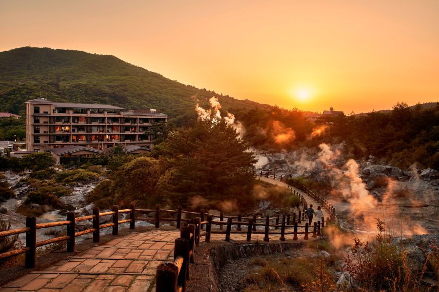 山岳リゾート発祥の地「雲仙」に佇む、全25室の大人のリゾートホテルです。日本初の国立公園、ユネスコ世界ジオパークに選ばれた当地で100年を超える歴史を持ち、2018年のリニューアルを経て上質な空間へと生まれ変わりました。当地のシンボルである「地獄谷」を目の当たりにする唯一無二の非日常感と、豊かな自然に包まれるリゾート感を満喫できます。全客室に温泉半露天風呂とテラスを完備しており、プライベートな空間で雲仙の自然と温泉を心ゆくまで堪能できる、大人の旅に相応しいお宿です。
