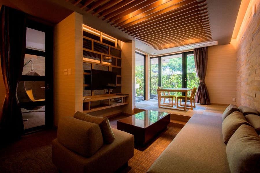 毎年クリスマス付近に利用しています。 客室に温泉があり、ベランダに直結しています。バスローブの準備もあるので出たり入ったりしてとても気持ちいいです。 部屋自体もとても広く、3部屋分のスペースがあり、いろんなとこでゆっくりくつろげます。 食事については朝ごはんの洋食がおすすめです。和食もいろいろな料理を楽しめていいですが、メイン?級のものがいくつか出てくる洋食の方が満足感がありました。 普通客室は1人3.5万円〜4万程度ですが、とてもお得だと思っています。今度は離れも利用したいです。