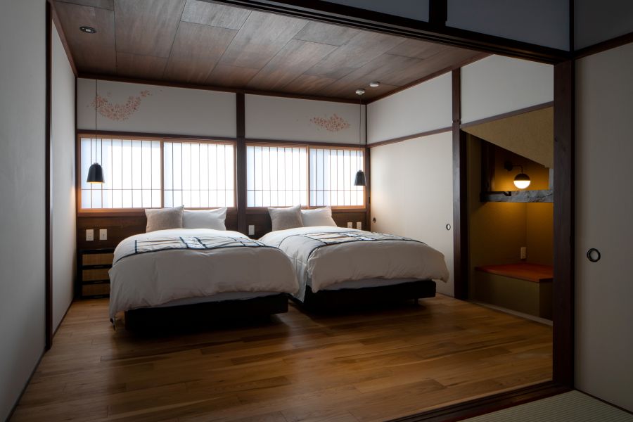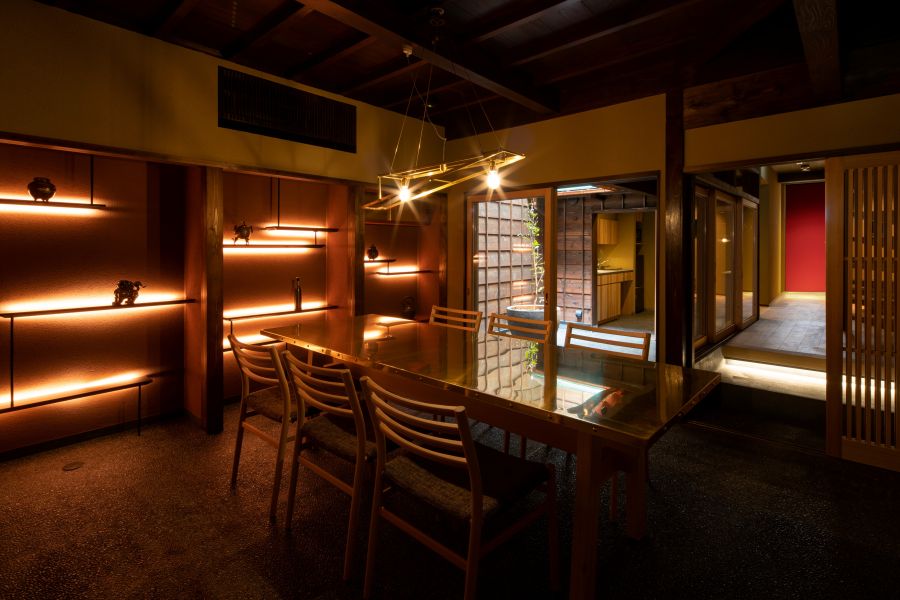 民家ホテル「金ノ三寸」は古民家2棟をリノベーションして作られた一棟貸しのホテルです。高岡銅器発祥の地金屋町にあるこのホテルは鋳物の町にあるホテルらしく鋳の字を分解した名前となっており、ホテル内は金属をふんだんに使った設えが施されさらには高岡銅器の製品が暮らしの中で感じらえるように飾られ、実際に使っていただけるようになっておりこの町を意識したこの町にふさわしいホテルとなっています。8人が宿泊できる八の棟と4人が宿泊できる月の棟がありそれぞれが異なるテイストに仕立てられてございます。長期に滞在したくなるホテルです。