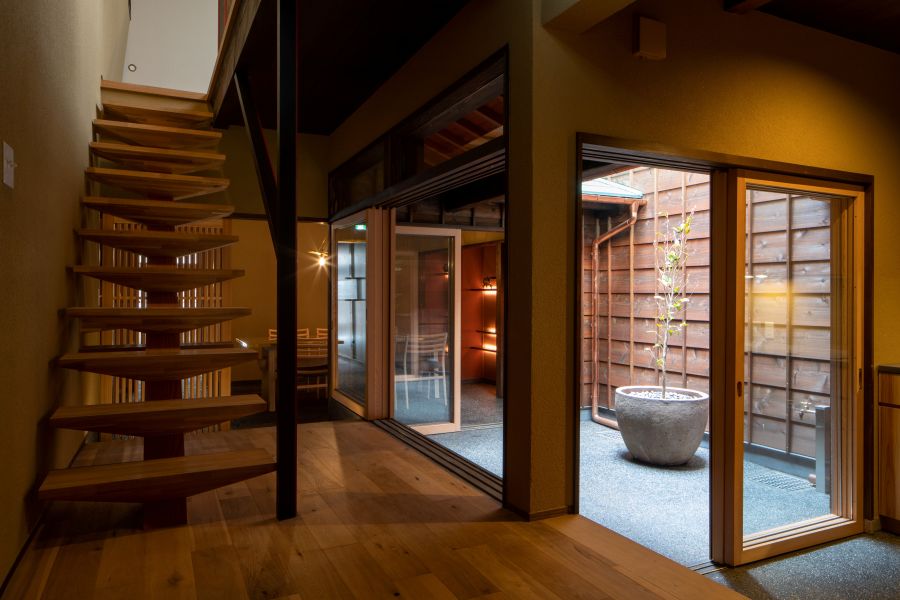 ゆっくり時間をかけて、一つ一つの部屋の隅々まで、身体中の感覚を研ぎ澄ませて楽しみたい空間と時間を過ごさせていただきました。インテリアの形、鋳物の使われ方の面白さ、人にこれほど優しく、心を震わせるチカラのある素材だったのかと、驚きを感じています。朝食でいただく食材の色が、暗い色のお皿にはよく映えていて、しかもどれも美味しく時間をかけていただきました。お風呂は全身伸ばせるスペースですし、ベッドも心地よくて、周りも静かでぐっすり眠れました。今回2泊して正解。広いお部屋をじっくり眺めることができましたし、休んでは高岡市を散歩。また室内で休んで夜の街も散歩して昼夜それぞれの街の顔を堪能させていただきました。鋳物体験、ギャラリーのこと、鋳物のことについてもオーナーさんからお話をお聞きできたのも、1日限られた人数の宿泊ならでは。これまでに経験したことのないひとときを過ごせました。夫婦2人で来ました。ここでの滞在をきっかけに話題も広がって、とても良い時間を過ごせました。写真は、夫がいちばん気に入ったという中庭。木に当たる光が美しい。