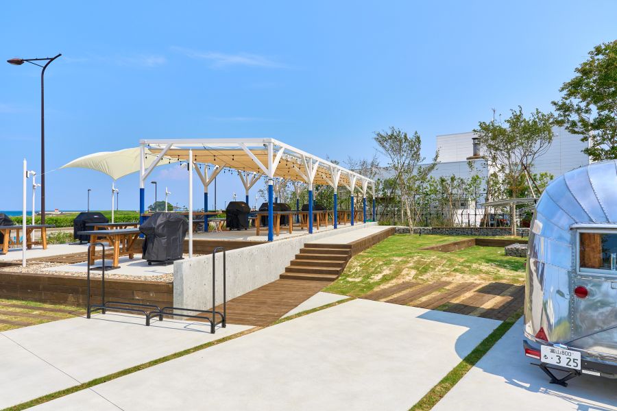 富山湾からのあって山連邦を一望できる海辺のグランピング施設「WHARF&CO.(ワーフアンドコ.)」“海と空を感じながら、暮らすように泊まる”をテーマにした宿泊施設。全室オーシャンビューのコンテナ型グランピング棟では、波の音をBGMにゆったりとした時間をお過ごしいただけます。日帰りBBQエリアも併設しており、手ぶらで本格的なバーベキューを楽しめるほか、地元氷見牛を使用したメニューもご用意。愛犬と一緒に宿泊できるお部屋や、焚き火エリアなども完備し、ファミリーからカップル旅行まで幅広くご利用いただけます。海辺の夕日と立山連峰が織りなす絶景の中、特別なひとときをお楽しみください。