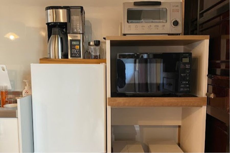 海外の方の利用が8割程度らしいですが、とてもキレイで1階にシャワールームとトイレと談話室、2階にトイレと客室が3部屋とマンガの棚があります。