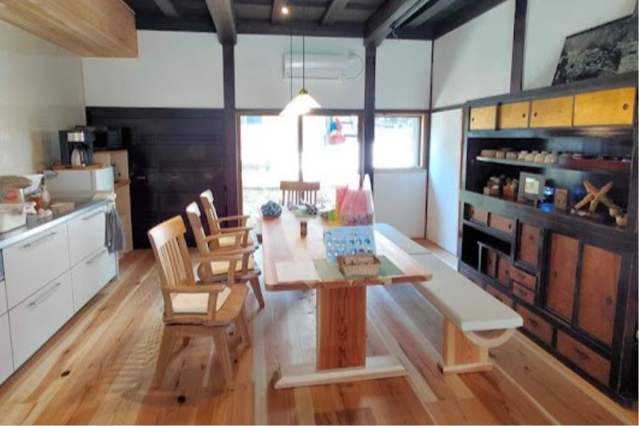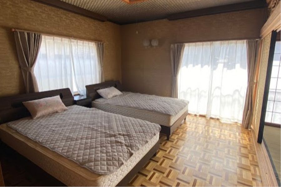 築80年の古民家をリノベーションしたゲストハウスです。部屋は4室で12名の宿泊が可能です。すべて個室になっていますのでグループ以外の宿泊者とは同室になりません。共用スペースにはキッチンが完備され、自由に利用することができます。近くには世界遺産の「相倉合掌造り集落」があり、歩いて訪れることも可能です。他には天然温泉やスキー場、1700メートル級の山々、大自然の渓流や河川など、四季折々の魅力あふれる環境の中にあります。また、近くには日本食の食堂や食料品店もありますので、夕食などにご利用いただけます。