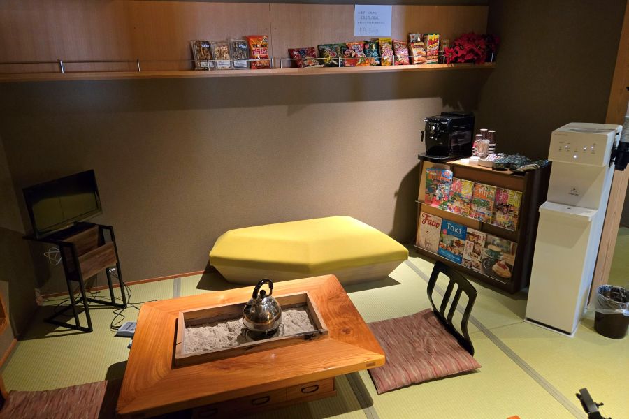 富山県氷見市の 【氷見旅館 たきの荘】さんに行ってきました。 素泊まり専門の旅館でした。 素泊まり専門ってどんな感じだろうと思っていましたが、 楽しいことばかり! 目の前で釣り🎣ができる宿で、竹竿もレンタルしてくれます。 サイクリングも気持ち良さそう! 調理ができるキッチンスペースもあります. グループで予約して、調理するのも楽しいかもw 私は、ここでお湯を沸かして 夜食の富山ブラックラーメンのカップ麺食べました(笑) お風呂は、鍵がかけられる浴室があり貸切みたいな感じで楽しめます。 トイレ・洗面は部屋にありました。 アルコールやジュースも用意されていて、 コーヒーメーカーも置いてありました。 ポップコーン・ソフトクリーム・お菓子もあるから お子様も快適でしょう。 お子ちゃまな私は、ソフトクリーム食べました^_^ 歩いていけるところに道の駅や遊具があったり、 商店街に歩いていくと・・・ よく知っているキャラクター達があっちこっちにいます。 急に喋り出したり・・・面白いです! 夕食は、少し寿司を食べてから、 近くの居酒屋「あじ蔵」さんにいきました。 寿司屋でも欠品していたブリがあった! 刺身どれも美味しかった! 超オススメです。 カウンターで食べましたが、 市場も関係者の方も来店されている名店でした。 朝食は、市場の2階で海鮮丼食べました。 新鮮で、朝食にはオススメですw 素泊まり専門だからこそ、 地元の居酒屋や市場に行って楽しめました。 氷見市素敵な場所でした。