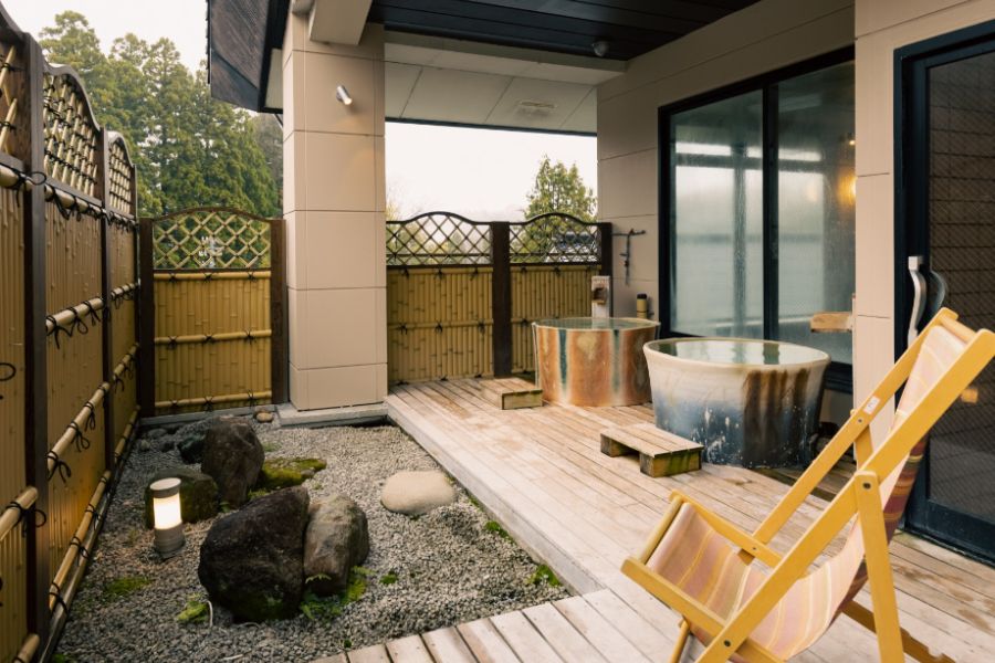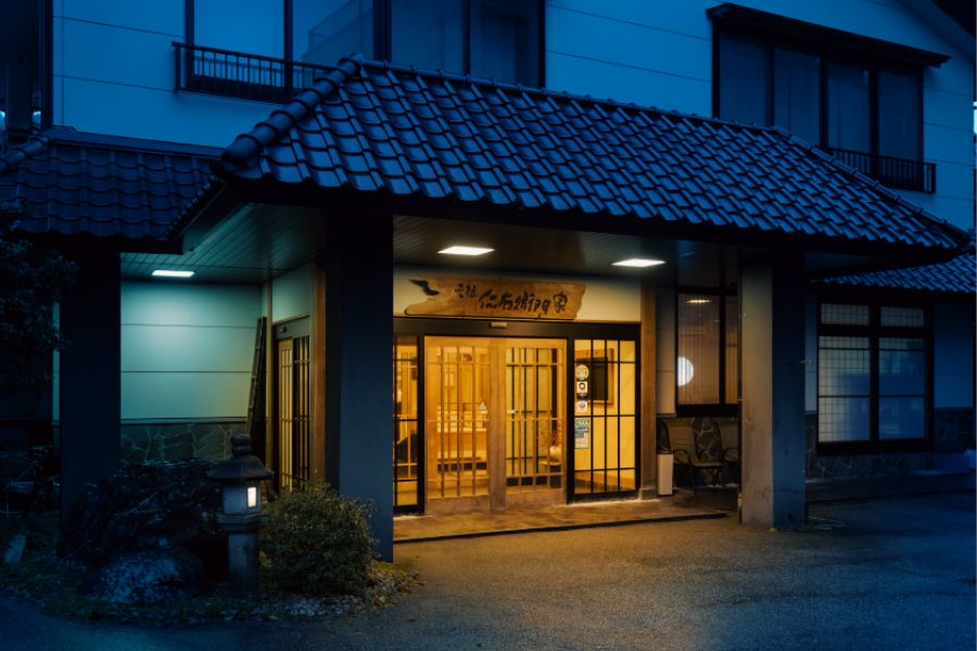 富山県有数の港町として知られる魚津市。港から15分ほどの山あいに位置する北山鉱泉に、小さな一軒宿「元祖 仁右衛門家」はあります。慶応3年の創業当時から湯治宿として栄え、訪れる人びとの疲れを癒してきました。時が経ち時代が変わっても、そのおもてなしの心は変わりません。湯治宿としての面影を残す和の空間で、富山の旬を感じられる料理に舌鼓を打ち、四季折々の自然に身を委ねる。心の底からホッと安らげるひとときを、どうぞごゆっくりお過ごしください。