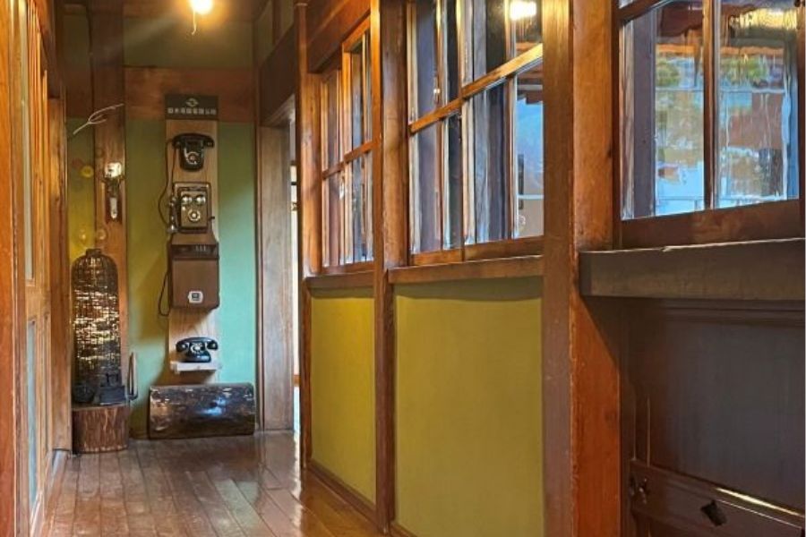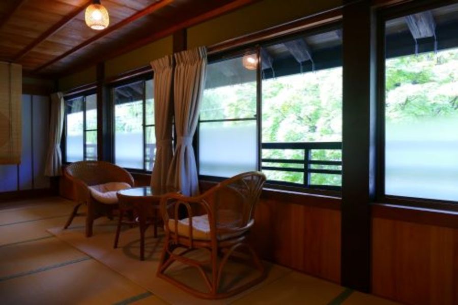 平日に訪問しました。 1泊2食付き 大人2名 駐車場あります。 白川郷合掌集落まで車で約20分 昭和33年9月創業 レトロな旅館は掃除も行き届き 特に窓硝子はピカピカでした✨ お部屋は2階 広々としたお部屋でした 窓から見える景色はとても綺麗で お布団はふかふかでした 電気を消すと 障子に映る影がとても素敵でした✨ 洗面所、トイレは共同になります。 浴室。「藍の湯」「翠の湯」「奥の湯」の3つの個室に分け、それぞれを貸し切りで利用できます。 温泉ではないですけど 気持ちが良かったです。 縁側のグリーンカフェではセルフサービスのコーヒーとともに庭の景色が楽しめます。 ほっとする素敵な場所です✨ 囲炉裏を囲んで、昭和の雑貨や道具、古本など珍しいものが沢山ありました オセロ、人生ゲーム、トランプ、UNOなど眺めるだけでも楽しい気持ちになりました。 食事は各別室にてご用意されてました。 最初に食前酒 山菜、川魚、飛騨牛と地元の食材、旬の食材を使ったお料理は 1つ1つが本当に味が良くボリューム満点でお腹がいっぱいになります。 ご飯はお櫃で用意されるので もったいないけど残してしまいました。 翌朝の朝食は煮物やお浸しなど、小鉢がたくさん並んだ賑やかな和食です 七輪の上には飛騨地方の郷土料理、朴葉味噌もとても美味しかったです。 女将さんの感じもとても良く また 泊まりたい旅館でした。