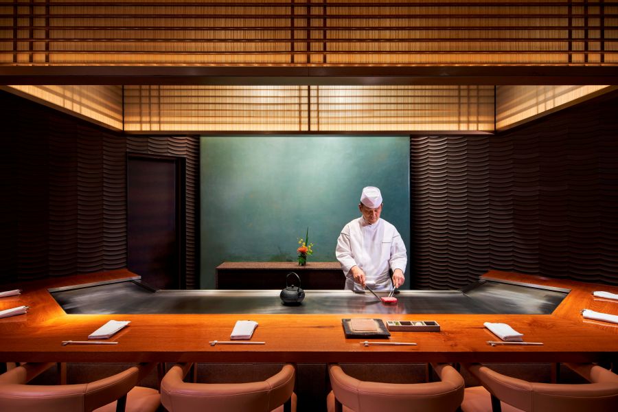 東京都千代田区丸の内1-1-1に位置するパレスホテル東京内の鉄板焼きレストラン。職人の技を目の前で堪能できる空間で、選び抜いた銘柄牛と山の幸、海の幸を、素材の持つ力を絶妙なバランスで調合したつけだれと、滋味豊かな自然塩とともにお楽しみください。