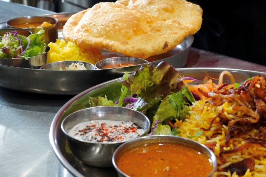 金沢市の中心部 長町の武家屋敷エリアに店舗を構えるインド料理レストラン。インド人シェフが作る本場の味は、地元の利用客のみならず、海外からの旅行客にも人気が高く、夜の部の営業ではドアの外に入店待ちの列ができることもしばしば。昼の部と夜の部の両時間帯でメニューが大きく変わる営業形態で、昼の部はリーズナブルなセットメニューのみ(日替わりカレーのセット/チキンビリヤニのセット)。一方の夜の部では、カレーだけでも30種類以上が常時ラインナップされているほか、前菜などのメニューも豊富で、ビールやワインを飲みながら食事を楽しむのにぴったりの営業形態となっております。ベジタリアン、ヴィーガン、グルテンフリーといった、食事制限のある方を幅広く受け入れられるメニュー構成でも、幅広い支持を集めています。