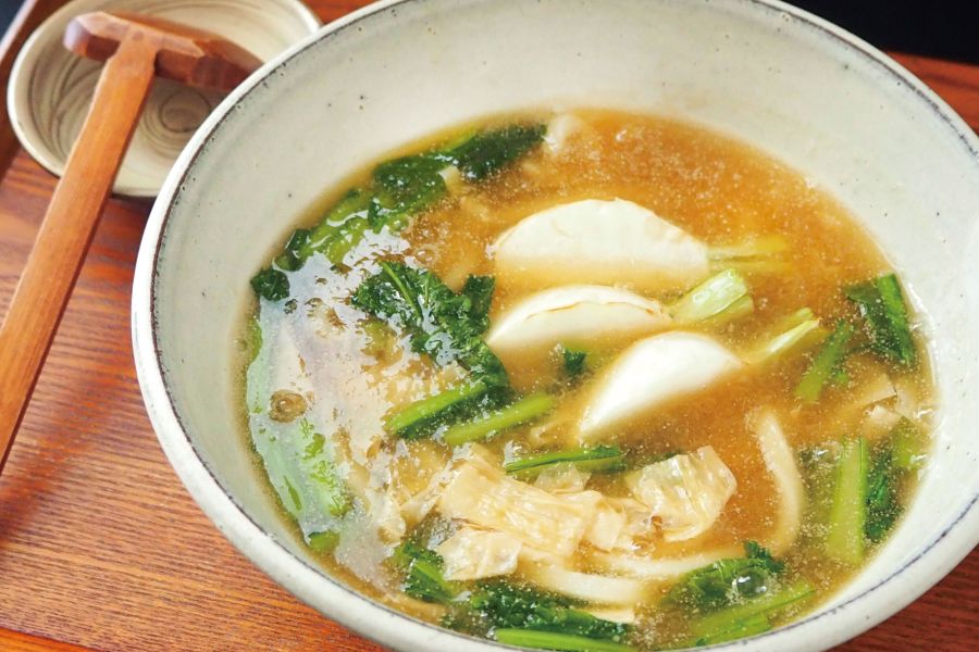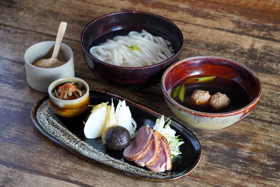 名代おめんは、1967年銀閣寺の地に創業したうどん料理店です。創業時より続く名物「おめん」は、創作つけ麺の先駆けとも言われており、旨みたっぷりのおだしに、国産小麦100%の自家製麺、きんぴらごぼう、旬の薬味野菜や胡麻を入れていただくつけ麺うどんです。おめんや、季節の創作うどんを目当てに、国内外から多くのお客様が訪れます。ベジタリアン、ヴィーガンメニューにも意欲的に取り組んでおり、美味しく安心な食を通して団欒のひとときをお過ごしいただけます。名代おめん銀閣寺本店の周辺は、銀閣寺、法然院、哲学の道や大文字山など京の名所があり、桜や新緑、紅葉など、四季折々の美しい景色を楽しむことができます。