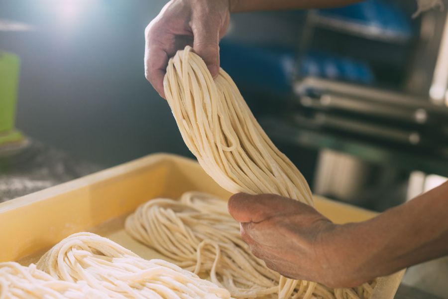 冷たいうどんをいただきました。 つけて食べるスタイルで、シンプルながら美味しかったです。 最初はそのまま楽しみ、途中から薬味や三味・八味を加えて味の変化も楽しみました。 店内は外国人のお客さんも多く、にぎやかな雰囲気でした。