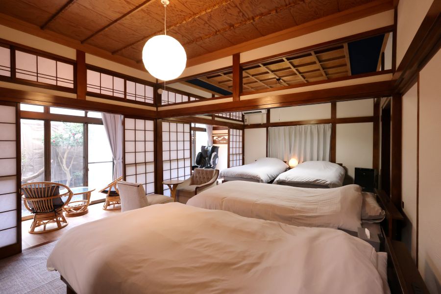 一日一組限定、貸し切りの宿富山市中心部にあるこちらの宿泊先はどこに行くにも便利です。富山城址公園やガラス美術館へ歩いて観光できます。広いリビングルームとダイニング付きのキッチンがあり、ゲスト全員がゆっくり楽しめます。中庭に面したテラスにはマッサージチェアがあり、静かでくつろいだ時間を過ごすことが出来ます。寝室は4名用と2名用の2部屋となり、定員は6名です。4歳以下のお子様で大人の方と添い寝される場合は、無料でご宿泊可能です。キッズスペースやベビーチェアなどのお子様グッズも完備していますので、お子様と一緒の宿泊にも最適です。