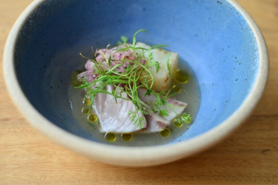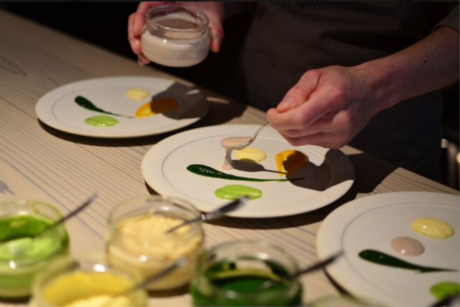 2025年4月、ディナーに訪問。 発酵をテーマにしたお店。贅沢に広いオープンキッチンを眺めながら食事ができます。キッチン内に発酵の試作品が多く、シェフの探究心が伺えます。 肝心なコースもとても素敵で、お箸で多くいただく和要素強めのフレンチになります。野菜も豊富でヘルシーな感じです。発酵したもののエッセンスが入ってる味も独特で、ここでしか味わえないものが多い印象でした。 シェフのパティシエもソムリエも雰囲気良く、良い時間を過ごさせていただきました。ご馳走様でした。