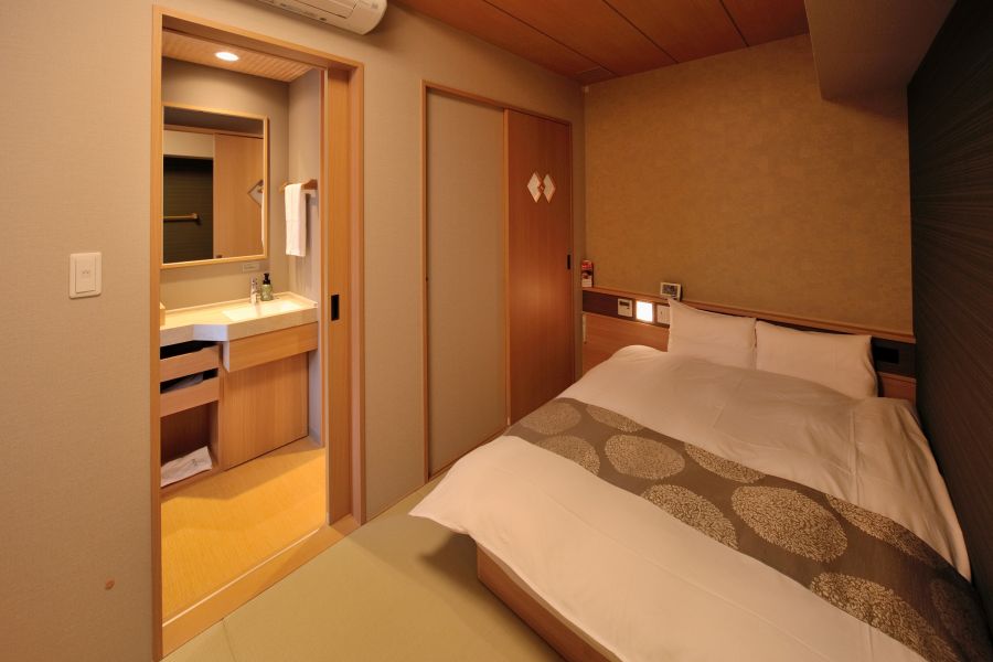 何回かいろんな場所のドーミーインは利用してましたが、初めて和風の御宿野乃を利用しました。 場所は電車だと富山駅から徒歩15分ほど。路面電車に乗れば「大手モール」で下車徒歩1分で着きます。 車だと北陸自動車道富山インターから富山駅方面に真っ直ぐ行けば着きます。ホテルの横にある提携駐車場に停めて、チェックイン時に1400円払えば券をくれるので出庫時に精算機に入れれば出られます。 和風のコンセプト通り、入ると全館畳敷きでチェックインが終わると靴を脱いで靴箱に入れてそのまま歩けるスタイル。 客室はダブルルームだったが、第1印象はちょっと狭いなと感じました。 なんと言っても驚いたのが、部屋で温泉に入れること‼️まぁ浴槽は小さいのだが、ボタンを押すと温泉が出て、10分くらいで温泉が溜まります。 大浴場も他のドーミーインより比較的広い方だと思います。内湯、半露天、打たせ湯、檜風呂など種類も多く良かったが、部屋で温泉が楽しめるのはいいですね。 ただ今回朝食の海鮮丼を期待してたのだが、曜日が悪いのか、たまたまなのか営業内に何回も行ってもいつでも満席状態😟朝早く行っても満席、受付ギリギリに行っても満席だったので、諦めました。。。家族連れ、カップル、外国人観光客がとても多かった印象です。みんなこれを目的に来てるのかなぁ??諦めて温泉に入ったらこっちはガラガラでした(笑) (部屋のテレビにあるレストラン混雑状況実際と合ってない気が…。) 温泉や施設は大変良かったんですが・・・。また来るときは、曜日を考えて来ます。残念・・・🥺
