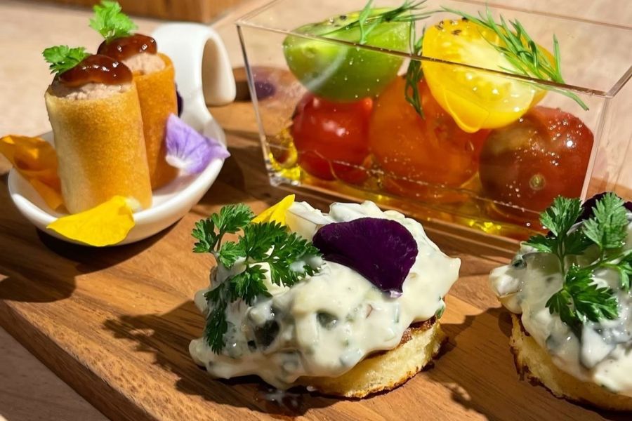 新橋駅より徒歩1分に位置する「屋上屋台中華りんりん」。ミシュラン獲得のフレンチレストランで修業したシェフたちが考案した、高級店のハイクオリティな味わいを、立ち飲みスタイルで気軽にご堪能いただけます。フレンチの技法が光る中華風の逸品や、お一人様でも楽しめるひと口おつまみが種類豊富。料理と合わせて、多彩なドリンクをお楽しみください。上質な料理とカジュアルさが融合した、新感覚の「中華風バル」で、ここでしか出会えない美食体験をご提供します。