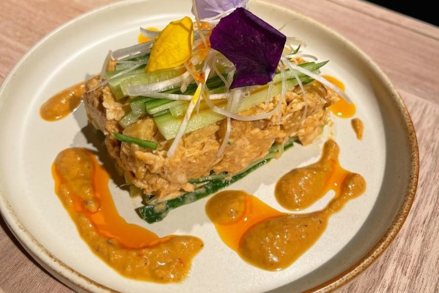 ✨【新橋グルメ速報】 新橋の屋上で発見! 中華をベースにした、驚くほど斬新で新しい味わいの料理たち。 スパイスや旨味が重なるその一皿に、オレンジワインが驚くほどぴったり🍷 五感を刺激する新感覚のペアリング、ぜひ体験してみて。