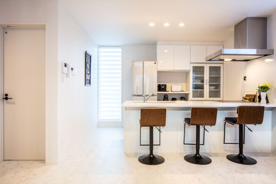 とても清潔で新しいプライベートな空間は、アクティビティーが豊富な白馬にいるのに、室内にいたい!と思わせる、そんな素敵な宿泊施設。 1階には3ベッドルーム、シャワー、シャワー&バスタブ、トイレ2部屋。2階には広いアイランドキッチン、リビングダイニング、バルコニー、トイレが。 白を基調にした清潔な室内、揃えてある食器や家具も使いやすく、全室にエアコン、床暖房も設置されていて、滞在者へのおもてなしの気持ちが感じられるとても素敵な宿泊施設。 チェックアウトしたくない!