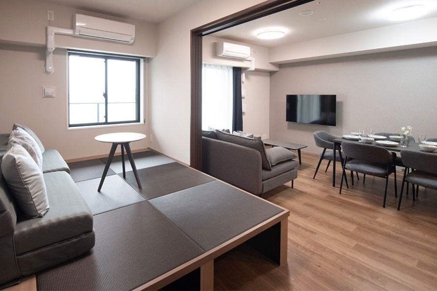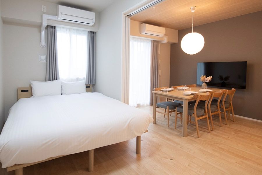 大阪万博に行くために宿泊しました。ホントに普通にマンションで困ることはなにひとつありませんでした。洗濯機もあり2泊したので、二日目の朝洗濯して出掛けました。ベランダの日当たり良し、そこから見える景色良し。お風呂は隣接のビルにあり、大きいお風呂でゆったりしています。時々外国のお客さんの声が大きいのが気になりましたが、ユニバも近いとかでみんな楽しそうでした。宿泊費とか子どもたちが出してくれたのでどのくらいかかったかは私にはわかりませんが、ベッドも寝心地が良くとても良い旅になりました。