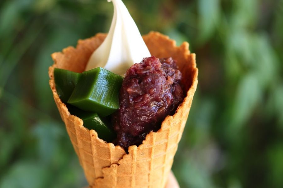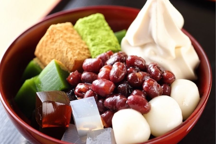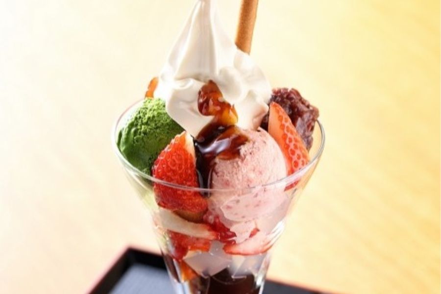 京都市上京区。1997年に開業。2018年から5度百名店選出。厳選素材と手作りのあんみつ、パフェ、ぜんざい、コーヒー、抹茶、甘酒等を提供。 2025年8月の休日16時30頃に相方と訪問。 京都ぶらり旅の7店舗目。 ここまで1人で朝から歩き続けて、疲れ気味。 相方と合流して、30分近く並んで17時過ぎに入店。 ■注文■※税込 提供まで約30分。 ・季節限定あんみつ氷 (500円) 小豆、寒天、白玉、抹茶ゼリー、黒糖ゼリー、ソフトクリーム。 ひとつひとつが美味しく、どこを食べても満足しました。 普段、かき氷は食べないですが、これは来年も食べたいと感じました。 ・もなかセット(あたたかい抹茶) (900円) 丹波大納言小豆の餡を挟んだもなか サクサクもなかは、口に含むと優しい甘さ。 濃厚な小豆と合います。 温かい抹茶は、滑らかな口触り。 風味が良く、甘味もあって飲みやすい。 合計2700円。 支払いは、PayPay可能。 各テーブルの距離は近いので、店内は賑やかな雰囲気。 静かに話すのは難しく、ワイワイ話す向けの店です。 ゆっくり過ごす人も多いので、待ち時間は長いですが、18時のラストオーダー間近になれば店内は落ち着いてます。 色々な世代が集まり、女性客が7~8割の人気の店ですが、女性も男性も一人で利用されています。 友達、デートで使いたくなる店です。 ごちそうさまでした(*^^*)