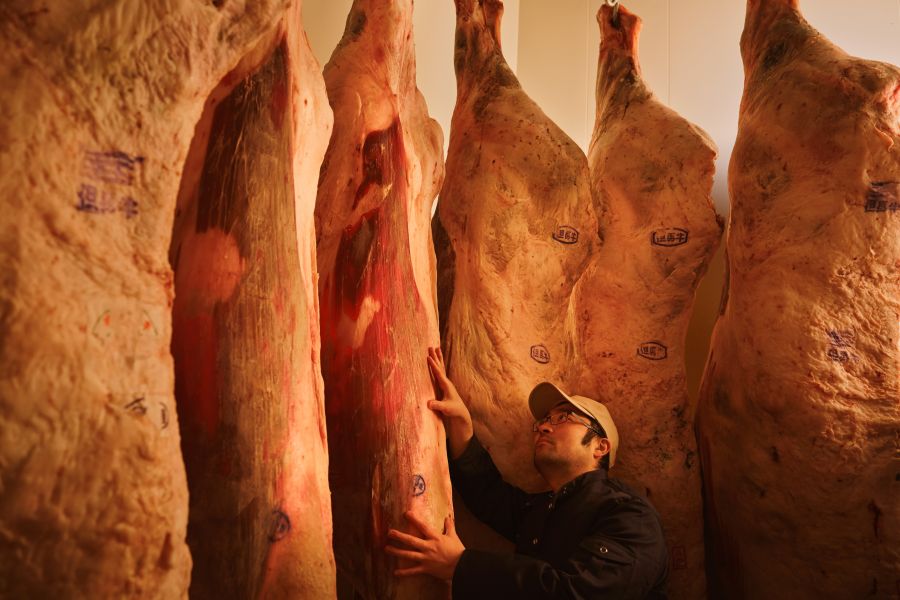 京中が肉屋として、お肉のおいしさをそのままに伝えたい。お肉好きのための場所「京中 月(きょうなか にくづき)」。日本の熟成肉のパイオニアとして、選び抜いた和牛を熟成させることで、引き出された味濃く香り高い熟成肉を味わっていただけます。夜の部は、ステーキの火入れに集中する為、完全予約制で、1日1組のみ完全貸切にて営業。京中式熟成肉の味と香りを一切邪魔しないよう完璧な火入れをすることで、その牛、その部位が持つ牛肉の味と香りを味わっていただけます。