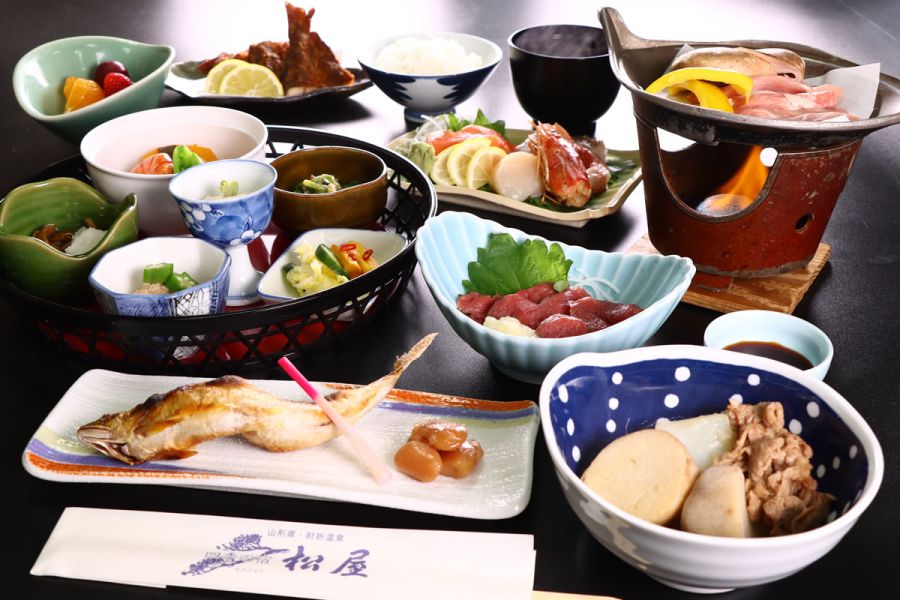 四季の宿 松屋は、情緒あふれる肘折温泉街の中央にございます。古き良き湯治文化が色濃く残る肘折温泉は、肘折カルデラの底にある珍しい地形と、雄大な自然に囲まれた温泉地となっており、天然温泉100%の源泉かけ流しです。 若旦那が打つそばは食材にもこだわっており、蕎麦粉は大蔵村産の最上早生を使用し、外2そばにて打っております。そばつゆも数種類の材料を使用し、若旦那の手作りでご提供しております。 そのほか山形のブランド食材や、地元で採れる山菜やきのこ、庄内浜に水揚げされる旬の海の幸とともに、ノスタルジックな旅をお楽しみください。