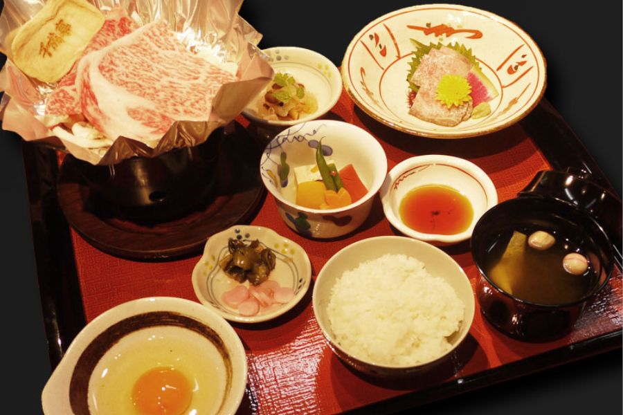 多賀大社に参拝したときにランチをいただきました。 近江牛の料理をいただける県内では有名なお店だそうで、お店の暖簾を潜ったら古民家をリフォームしたのかとても落ち着いた雰囲気に包まれ趣き深いお店です。 もちろん近江牛料理の美味しさは十分堪能できます。 ランチメニューのすき焼きも甘さを抑えた分、近江宇治の柔らかさ、深い味わいを堪能出来ます。 ランチタイムはラストオーダー15時なので、本格的な近江牛料理もリーズナブルに味わえます。
