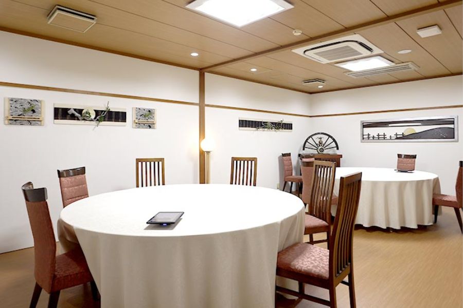 - フードコート 38席、個室5部屋(1室4~16名)、2階団体宴会席 130席