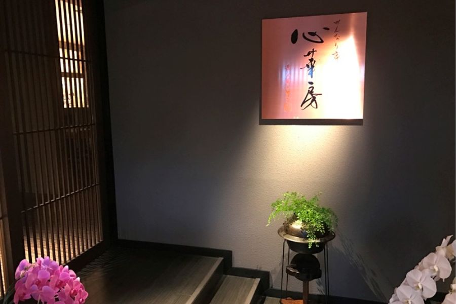 せんなり亭心華房(しんかぼう)さんに行ってきました。せんなり亭心華房さんは、彦根駅から歩くと20分ほどにある夢京橋キャッスルロード沿いにある近江牛専門レストラン千成亭さんが運営しているお店です。お店までは彦根駅からタクシーでいくことがおススメですね。 厳選した牝の近江牛を使った鉄板焼きや会席料理を落ち着いた空間で楽しめるお店です。 店内は広くカウンターでの食事は臨場感ある調理が楽しめそうでした。今回、個室で食事をしましたが、重厚感ある部屋であり記念日や接待など特別な食事に最適なお店であると感じました。
