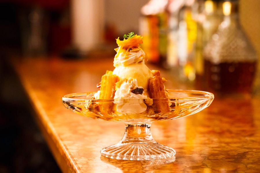 飲んだ後 デザートを食べたくておとずれました 酔っていたのですぐに看板を見つけられず 店の前をウロウロしました ようやくカフェへの細い階段を 踏み外さないよう注意して降りると 閉店しているのか?と思うくらい 店内は暗いです そして ちょっと媚びない?感じのお姉さんが オーダーを聞いてくれました 小声で話すからなのか アングラっぽい雰囲気をより印象づける こういう接客も演出なのかぁと… 不快に思ったわけではないですよ ムーライトボードを頂きました 甘い物好きにはたまりません