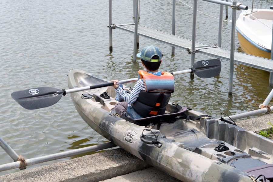 カヤック・スワンボートにのって冒険にでかけよう!まずは場内で軽く練習して、慣れてきたら隣接する常陸利根川に出ることが出来ます。川の流れは比較的ゆっくりなのではじめての方にもおすすめです!※強風など悪天候時は運航可能エリアが制限されたり、アクティビティ自体中止になることもございます。ご了承ください。