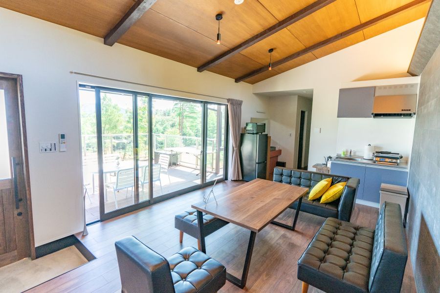 滋賀県甲賀市の信楽高原に位置するコテージ型グランピング施設。高級感のあるコテージが5棟、施設には宿泊者専用のプール、サウナをご用意しております。日中は木々の新緑、紅葉を。夜には星の降る夜空が楽しめる信楽高原の大自然の中、ラグジュアリーなコテージで極上のグランピング体験を。