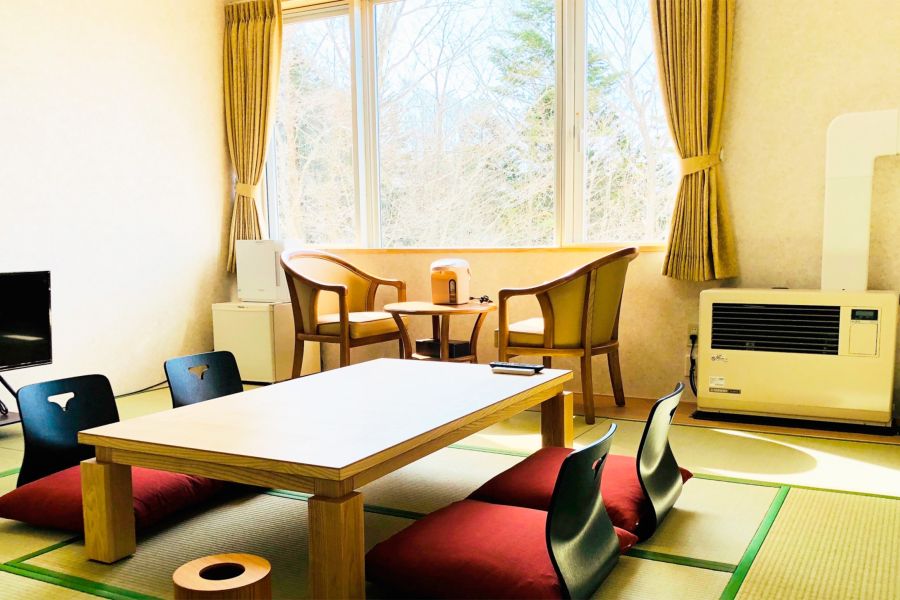 2025.6月宿泊 1〜3名用の和室部屋を予約しました。 広くて清潔感があります。 旅館のようにポット(ドリップコーヒー&お茶セット)、冷蔵庫(冷水ポット)は準備済み。 温泉♨️はチェックイン〜翌8:00入浴可。 露天風呂は熱いけど外気が低いので本当に気持ち良かったです。晴れていたら露天風呂から星⭐︎が見えるらしいです。(宿泊時は雨でした。残念😭)でも夜は外の電灯に集まる見たことの無い大きな蛾が扉に張り付いているので勇気を出して入りました😱 足が悪いと事前に伝えてありましたが、キチンと椅子を準備して頂きました。ありがとうございました。(元々部屋に備えてあったかもしれませんが…) トイレは部屋にはありません😞 軽朝食もパン4種類、カップサラダ、インスタントスープ・コーヒー、牛乳があり美味しかったです。