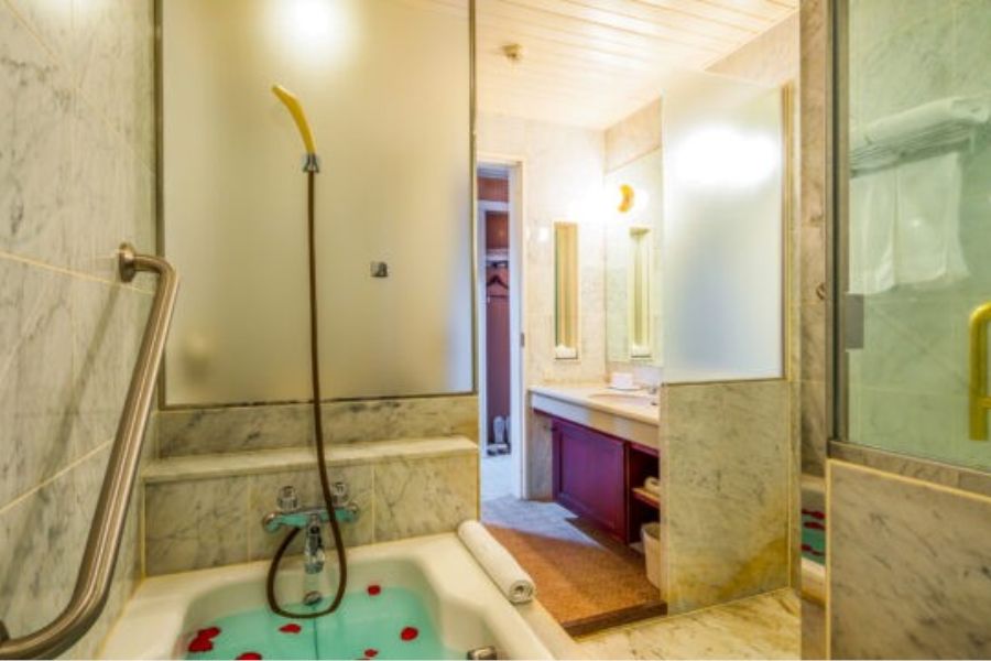 ゴルフ場はまぁまぁ。お風呂が温泉らしいけど、露天風呂にはお湯が入っていない。室内のお風呂はジェットバスだらけで、リラックスして入れない。 レストランなし。 カードは入れない。リモコンなし。iPadなし、カートのアクセルが効かない。ブレーキも効かない。散々だった。