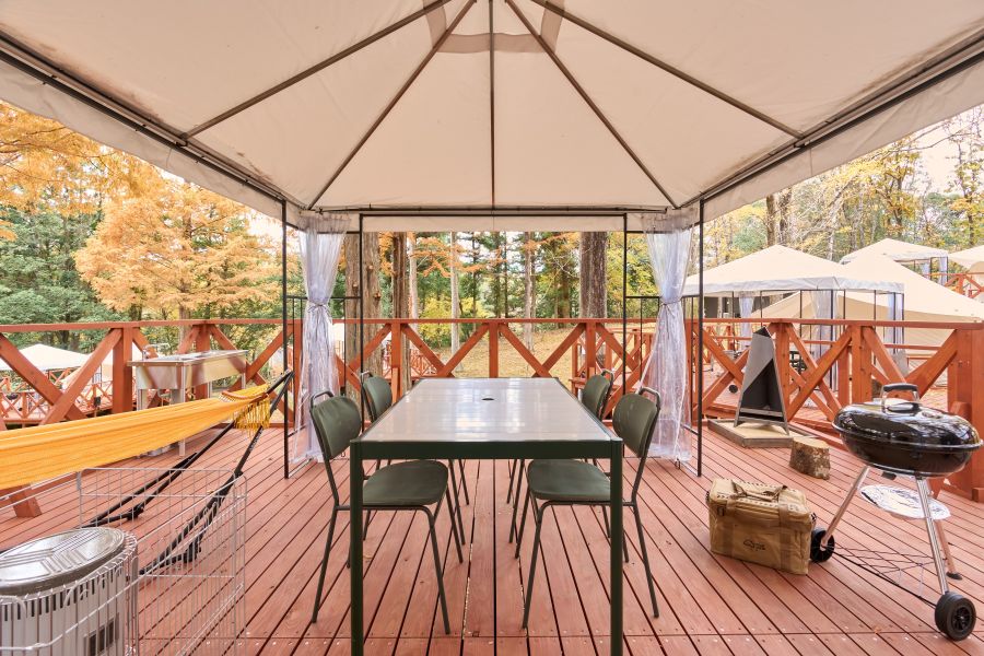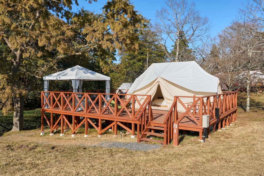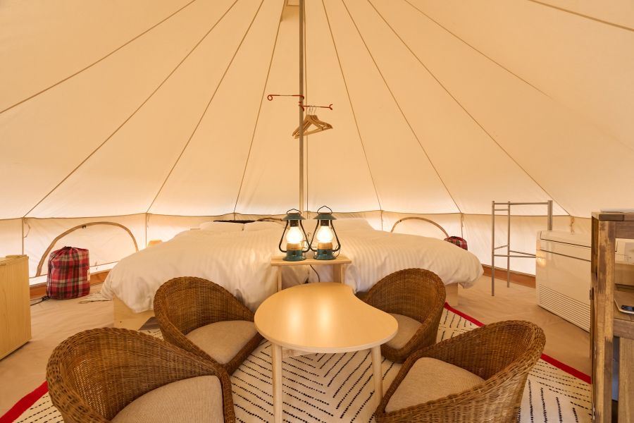 正月休みにグランピング「ファミリースイート」に宿泊させていただきました。 子連れだと荷物が多くなりがちなので、フロント受付で荷物を運ぶカートやベビーカーを借りることができたのが良かったです。 部屋は想像していたよりも正直狭く感じました。 テントに24㎡と記載されていましたが、どちらかというとカップル・少人数向けの広さではないでしょうか。ファミリー向けなら倍ぐらいの広さはないと快適には感じられないかなと思います。 また、トイレや洗面所、お風呂(またはシャワー)が付いていない為、非常に不便でした。 最近は水回りが完備されているグランピング施設が主流になりつつあるだけに、新しくできたばかりのこちらの施設では完備されていなくて残念に思いました。 子連れの場合は水回りが完備されているコテージの方に宿泊されることをおすすめします。 暖房が霜取り運転で温風が出ない時がある為、特に深夜は長時間にわたってお部屋がとても寒かったです。 寒さの影響か、子どももトイレが近くなり、深夜2時頃に起きてトイレに行きたいと言い出し、極寒の中、夜道をランタンを持って共同トイレ棟まで行かなければならなかったのがつらかったです。 夕食のBBQでは、野菜マルシェで好きな野菜を好きなだけいただけるサービスがありましたが、 庇もなく雨風を避けることができない外シンクで、氷水のように冷たい水で野菜を洗ったり、皮を剥いたり切ったりするのが非常に面倒でした。 グリルの火を見つつ、子どもたちのことも見なければならないので忙しく、最初からカット済みですぐ食べれる状態で提供して欲しかったです。 グリルも小さめなので火力もいまいちな感じで、焼くのに結構時間がかかりました。 りんねの湯では、授乳室が整備されていたので、1歳以下の子どもも来ることを想定していると思うのですが、 トイレにベビーチェア(ベビーキープ)が取付られているところが無く、夫がお風呂から出てくるまで我慢しなければならない状況になり困りました。 脱衣所は結構狭い印象でした。 ベビーベットも設置されていない為、まだひとり歩きができない我が子の着替と自分の着替が大変でした。風呂場にはベビーバスの用意はありましたが、ベビーソープの用意は無かったです。 朝食時に利用したRINNEカフェのトイレにもオムツ替え台やベビーチェアが取付られているトイレがありませんでした。 (スタッフの方に声をかければタオルを敷いた台を用意してくださるようですが、活発に動き出す赤ちゃんもいるので安全面上ベルト付きのものや柵があるベット等の方が良いなと思いました) 共同トイレ棟の女子トイレ2つのうちの1つは、ベビーチェアが設置されていましたが、ドア等に表示が無いので分かりづらいです。 子育てママ目線でグランピング宿泊の感想を述べると、結構厳しめ評価になってしまいました。
