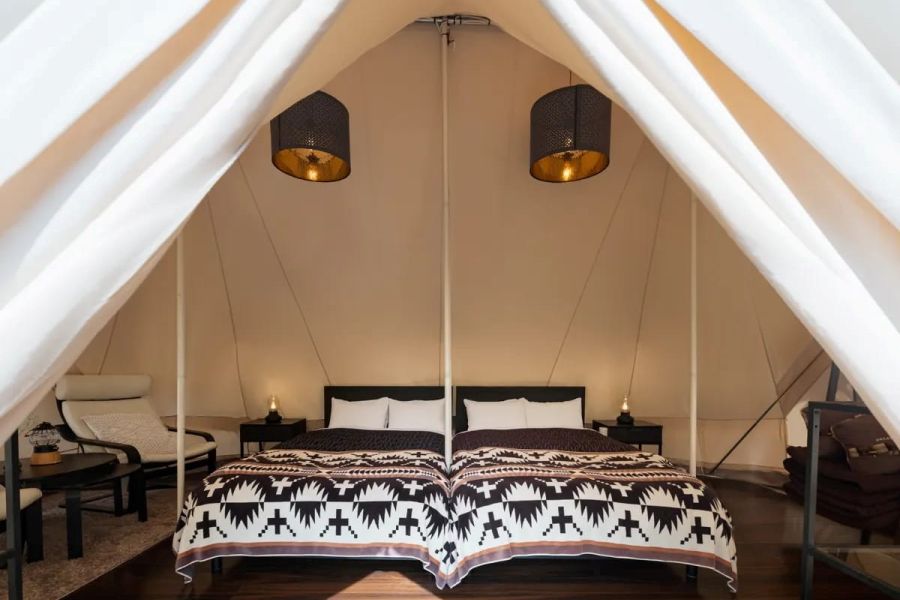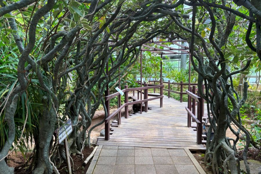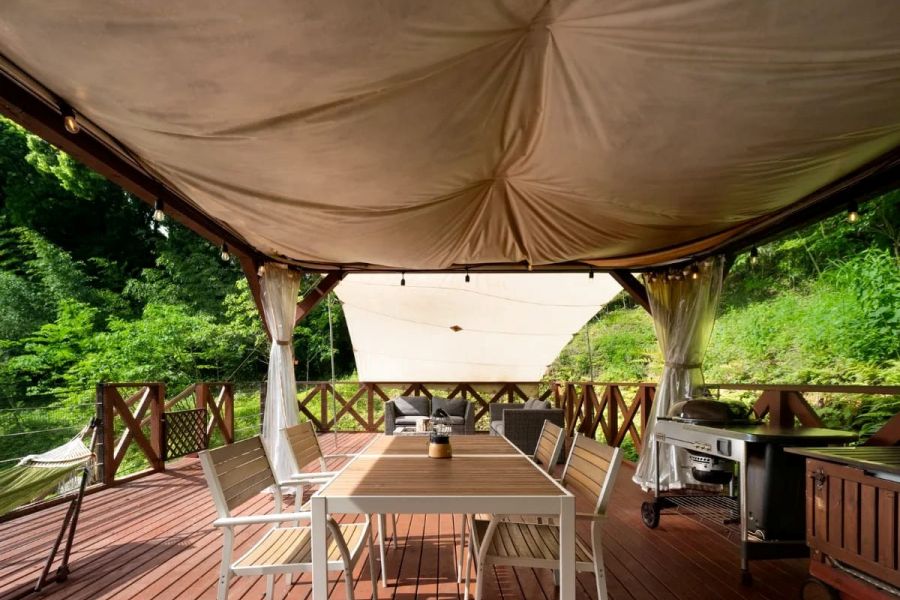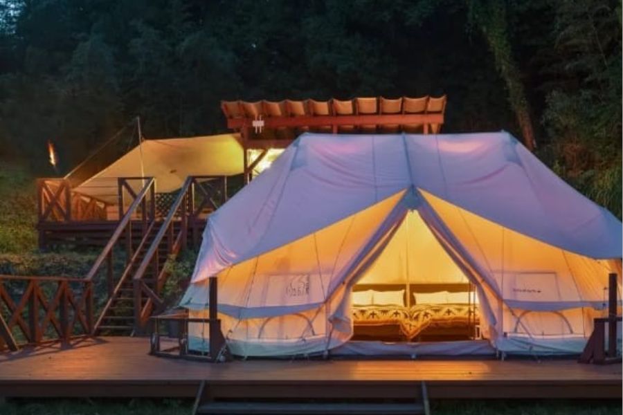 宿泊のチェックインの際に荷物を運ぶものを貸してくれると良かったです。 大荷物でテントまで遠かったので、、、 テントは綺麗なのですが、ハンモックは地面にお尻が当たる高さで、お尻を強打しました。 高さを確認した方が良いと思います。 夜の植物園でアルコールフリー提供なのは画期的なので、もっとアピールしていいと思います。 光の演出も素敵でした。お酒を片手に熱帯植物園の中で光のショーを観れるのは斬新でした。 ディナーは、メニュー表が無くてコースの料理が分からなかった。こちらから言って途中で出してもらいました。高級な雰囲気にしたいのかカジュアルなのかよくわからない雰囲気でした。 照明を少し落とすとか、カトラリー出さないのなら一品ずつナイフ、フォーク交換した方が良いと思います。味はまずまずでした。 朝食は、大満足の品数で美味しかったです。 地元の食材も豊富で、サラダや納豆や卵も美味しかったです。トマトカレーも美味しかったです。 あと宿泊受付で貰えるハーブのポプリ(ハーブのカスが出てくるので入れ物注意です)ハーブティーは嬉しいサービスです。 全体的に準備不足で施設は出来たけど、 人員のレベルがもう一歩という感じ。。。 慣れてきて気配りや目配りが出来るスタッフが成長すると今後さらに良くなると思います。